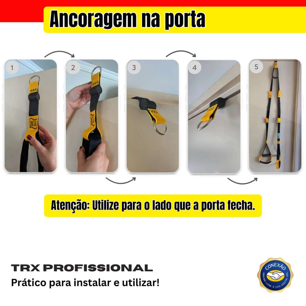 | Acessórios incluídos | Âncora de porta embutida, extensor multifunção, mosquetão 230 kgf, manoplas emborrachadas Confort Plus Onda013 |